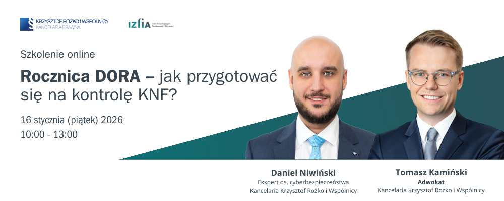 Szkolenie online: „Rocznica DORA – jak przygotować się na kontrolę KNF?” - 16 stycznia 2026 r.