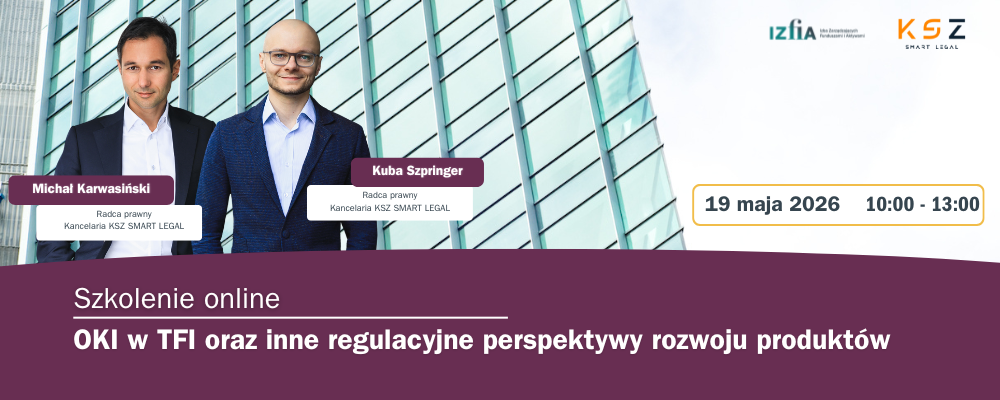 Zapraszamy na szkolenie online „OKI w TFI oraz inne regulacyjne perspektywy rozwoju produktów”, które odbędzie się 19 maja 2026 r…więcej informacji o Szkolenie online: „OKI w TFI oraz inne regulacyjne perspektywy rozwoju produktów”, 1…